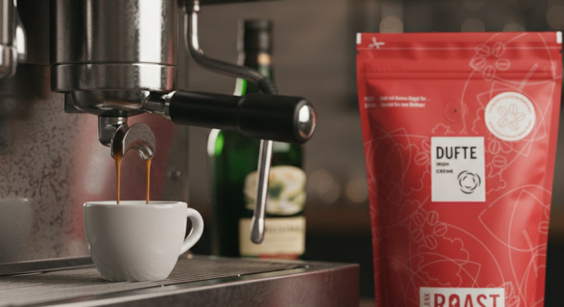 DUFTE IRISH COFFEE kombiniert 100% brasilianische Arabica-Bohnen mit einem verführerischen, natürlichen Irish-Coffee-Aroma. Der harmonische Kaffee ist mild im Geschmack, mit einer leichten Fülle und wenig Säure – perfekt für Liebhaber sanfter Kaffees, die das Besondere suchen.